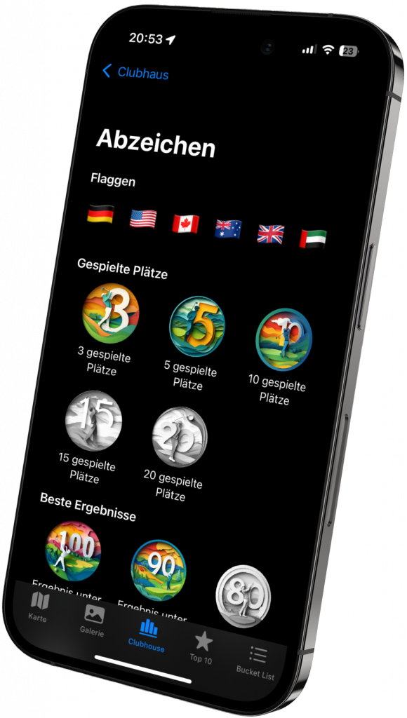 Halte deine Turniersiege und besonderen Momente für immer fest – mit Abzeichen, die so einzigartig sind wie deine Erfolge. Vom ersten Hole-in-One bis zum großen Turniersieg: Jedes Abzeichen erzählt deine Geschichte. Und das Beste? Du kannst jederzeit sehen, wie nah du dem nächsten Ziel bist. Deine Leistungen, stilvoll präsentiert.