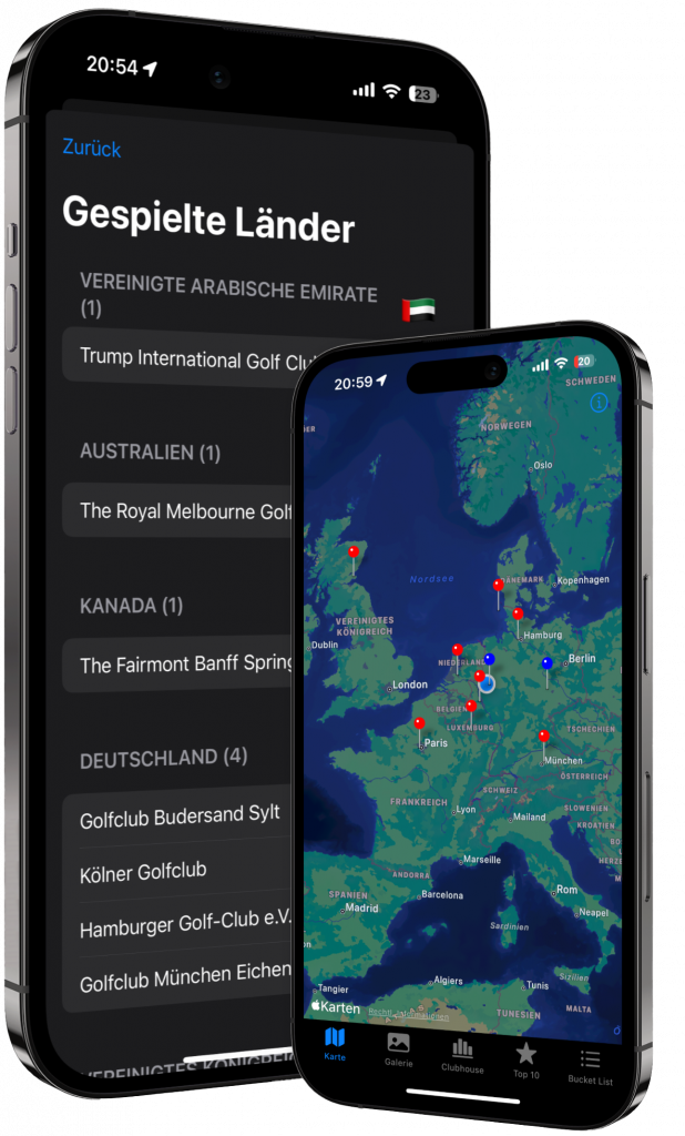 Markiere gespielte Plätze auf einer Karte und entdecke neue Orte für deine nächsten Golf-Runden.