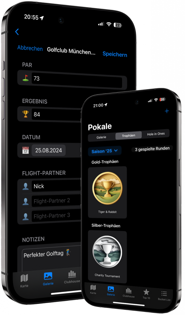 Sammle digitale Golfbälle für jeden Platz, den du gespielt hast, und bewahre deine schönsten Momente für die Ewigkeit. Mit Fotos und persönlichen Notizen hältst du deine Erinnerungen fest – lebendig, einzigartig und immer griffbereit.